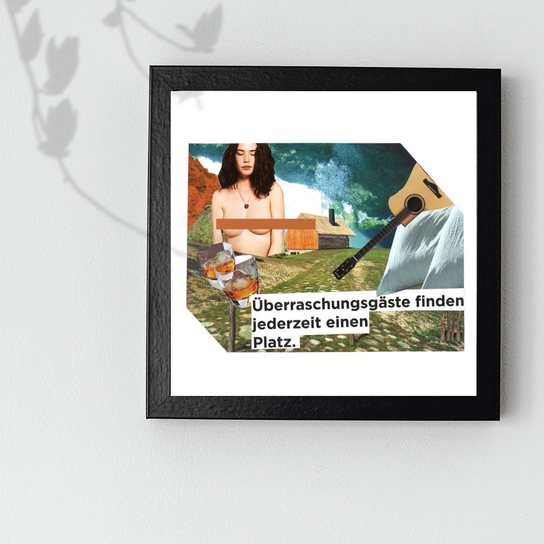 Gerahmte Collage (analog) für WG-Einweihung 2017