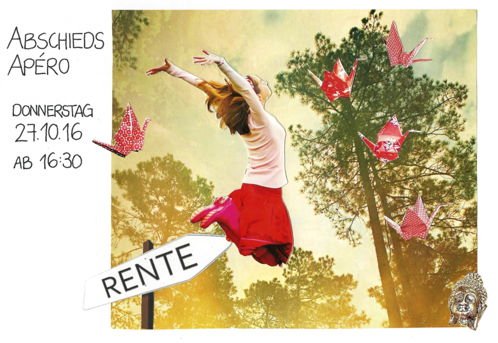 Collage-Einladungskarte (analog) für Rentenfeier 2016